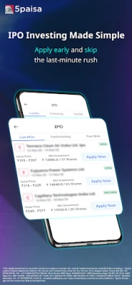 تتجاوز مزايا 5paisa مجرد التداول اليومي لتمتد إلى بناء الثروات على المدى الطويل. استثمر في أكثر من 4000 خطة صندوق استثمار مشترك مباشر، أو شارك في الاكتتابات الأولية بسهولة مع خاصية التقديم المسبق وتتبع حالة التخصيص في الوقت الفعلي. لتعزيز قدرتك التداولية، تقدم 5paisa خيار "ادفع لاحقًا" (MTF) الذي يمنحك رافعة مالية تصل إلى 4 أضعاف على تسليم الأسهم برسوم فائدة تنافسية للغاية. تثق أكثر من 5 ملايين عميل في 5paisa Capital Ltd. كواحدة من أسرع منصات الوساطة الرقمية نموًا في الهند، وذلك لالتزامها بالشفافية في التسعير، وتوفير أدوات متطورة، وتقديم تجربة استثمارية سلسة عبر جميع فئات الأصول.