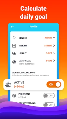 تتجاوز Waterful مجرد التذكير البسيط؛ إنه مدرب الترطيب الشخصي الخاص بك. يقوم التطبيق بحساب هدفك اليومي من السوائل بدقة فائقة، مع الأخذ في الاعتبار عوامل مثل وزنك، جنسك، مستوى نشاطك، وحتى ظروف الطقس المحيطة. سواء كنتِ حاملًا أو مرضعة، يضمن Waterful أن يكون تقديره دقيقًا لمتطلبات جسمك الفريدة. بالإضافة إلى ذلك، يمكنك ضبط تذكيرات مخصصة تناسب جدولك الزمني، مع إمكانية تحديد أوقات الاستيقاظ والنوم لضمان عدم إزعاجك خلال فترة الراحة، أو حتى تأجيل التذكيرات متى شئت.