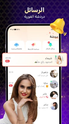 Saada يجمع السعادة والمتعة! انضم لغرف دردشة صوتية حية ونصية. استمتع بتواصل واقعي، أنشئ بثًا مباشرًا، وتفاعل مع مجتمع عالمي آمن. تجربتك الجديدة للتواصل الاجتماعي.